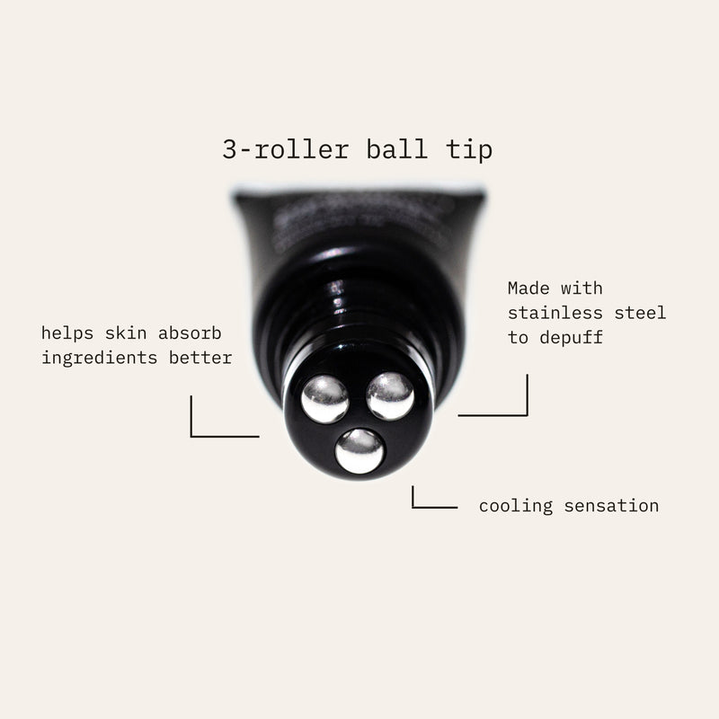 Our stainless steel triple-roller ball tip provides a cooling sensation while de-puffing the skin around the eyes and helping the skin absorb ingredients better.