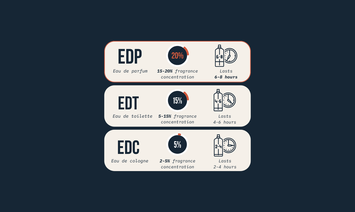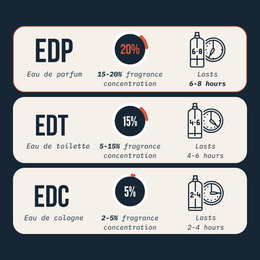 concentration means our eau de parfums are stronger + longer-lasting than body sprays and eau de toilettes.
