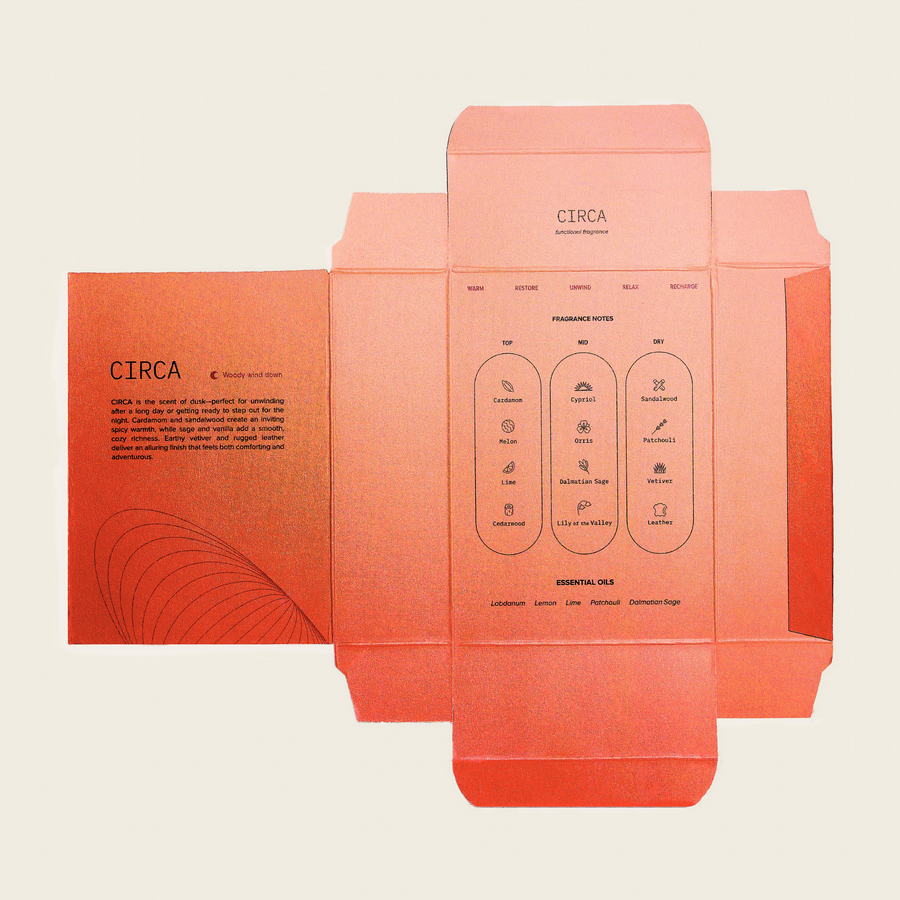 Crafted by world-class perfumers, Circa blends mood-boosting essential oils with high-potency eau de parfum strength. Sage and patchouli ease stress and tension, while labdanum lulls you into an emotional calm — helping you transition from the rush of the day into your element.